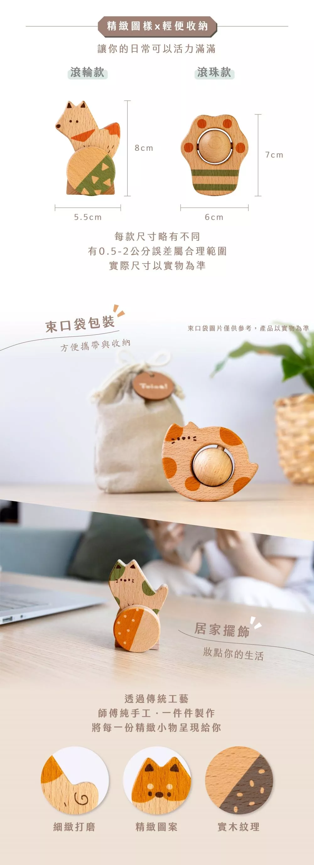 • 材質:櫸木 / 束口袋